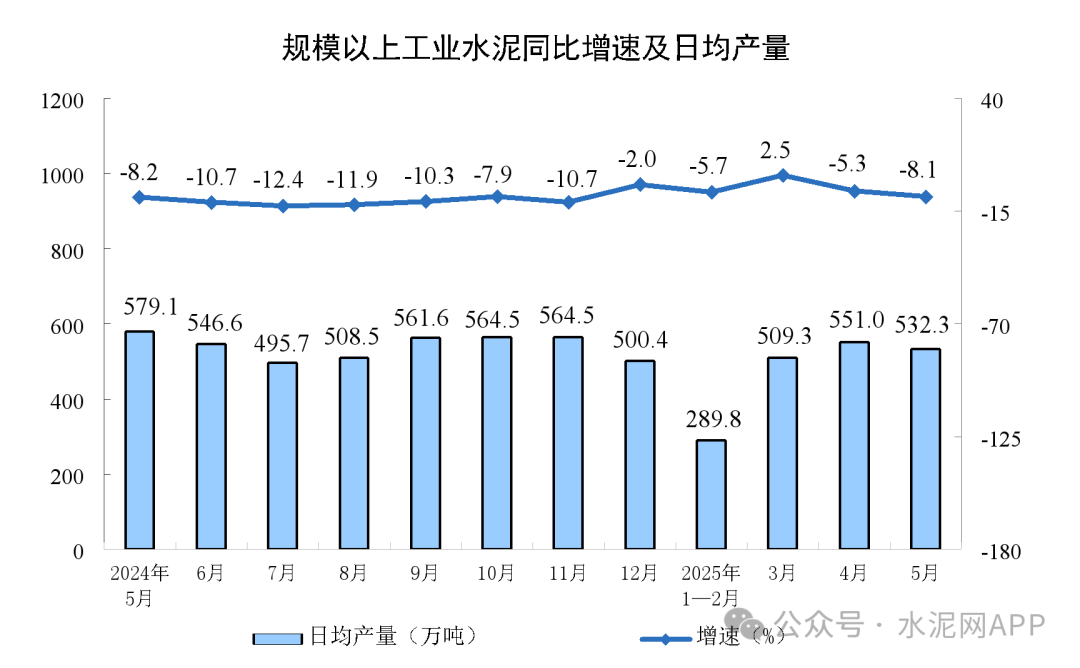 6月16日,國家統(tǒng)計局公布了5月份國民經(jīng)濟(jì)相關(guān)數(shù)據(jù)。5月份,規(guī)模以上工業(yè)增加值同比實際增長5.8%(增加值增速均為扣除價格因素的實際增長率)。從環(huán)比看,5月份,規(guī)模以上工業(yè)增加值比上月增長0.61%。1—5月份,規(guī)模以上工業(yè)增加值同比增長6.3%。其中5月份水泥產(chǎn)量16500萬噸,同比下降8.1%;1-5月份水泥產(chǎn)量65939萬噸,同比下降4%。此外,數(shù)據(jù)顯示,2024年1-5月全國水泥產(chǎn)量為68727萬噸,由此計算,今年1-5月水泥全口徑產(chǎn)量比去年同期減少2788萬噸,降幅4.06%。