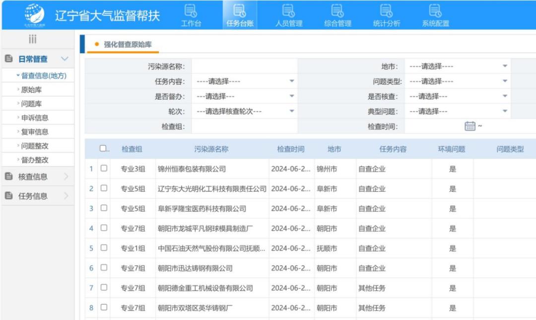 遼寧省大氣監(jiān)督幫扶信息管理平臺