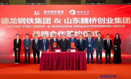 06月26日上午,德龍鋼鐵集團(tuán)與山東魏橋創(chuàng)業(yè)集團(tuán)在天津舉行戰(zhàn)略合作框架協(xié)議簽約儀式。在天津市鋼鐵工業(yè)協(xié)會(huì)秘書(shū)長(zhǎng)楊勇、副秘書(shū)長(zhǎng)時(shí)東生及現(xiàn)場(chǎng)百余位嘉賓的共同見(jiàn)證下,德龍鋼鐵集團(tuán)營(yíng)銷(xiāo)中心總經(jīng)理李君亮、宏橋國(guó)際貿(mào)易有限公司總經(jīng)理劉健康分別代表雙方簽約。
