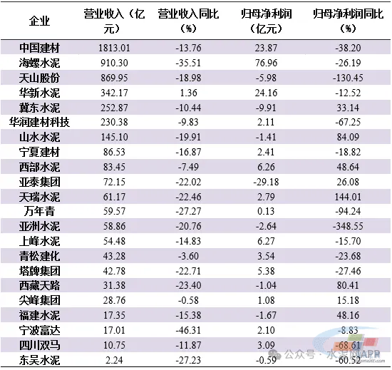 表2:2024主要水泥上市公司水泥熟料銷售和均價(jià)情況