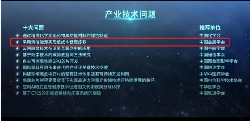 7月2日,在第二十六屆中國科協(xié)年會主論壇上,中國科協(xié)發(fā)布了2024年度重大科學問題、工程技術難題和產業(yè)技術問題目錄。興澄特鋼煉鐵事業(yè)部提報的“采用清潔能源實現(xiàn)低成本低碳煉鐵”項目被遴選為2024十大產業(yè)技術問題,成為鋼鐵行業(yè)唯一。
