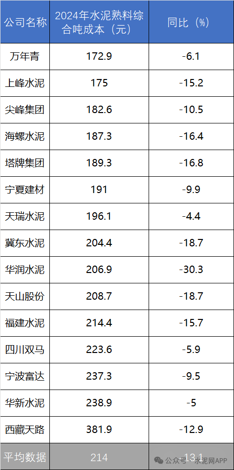 中國水泥網(wǎng)根據(jù)目前滬深和香港上市公司年報分析了各水泥企業(yè)相關(guān)數(shù)據(jù),下面僅從生產(chǎn)成本角度分析,誰的水泥熟料綜合生產(chǎn)成本更低?生產(chǎn)成本低也意味著誰在市場上競爭力更強(qiáng)。下面就根據(jù)相關(guān)數(shù)據(jù)分析下24年度水泥企業(yè)生產(chǎn)成本情況(水泥熟料綜合生產(chǎn)成本指對外銷售的水泥和熟料合計數(shù)據(jù),部分企業(yè)還包含海外數(shù)據(jù),以下簡稱噸生產(chǎn)成本)。