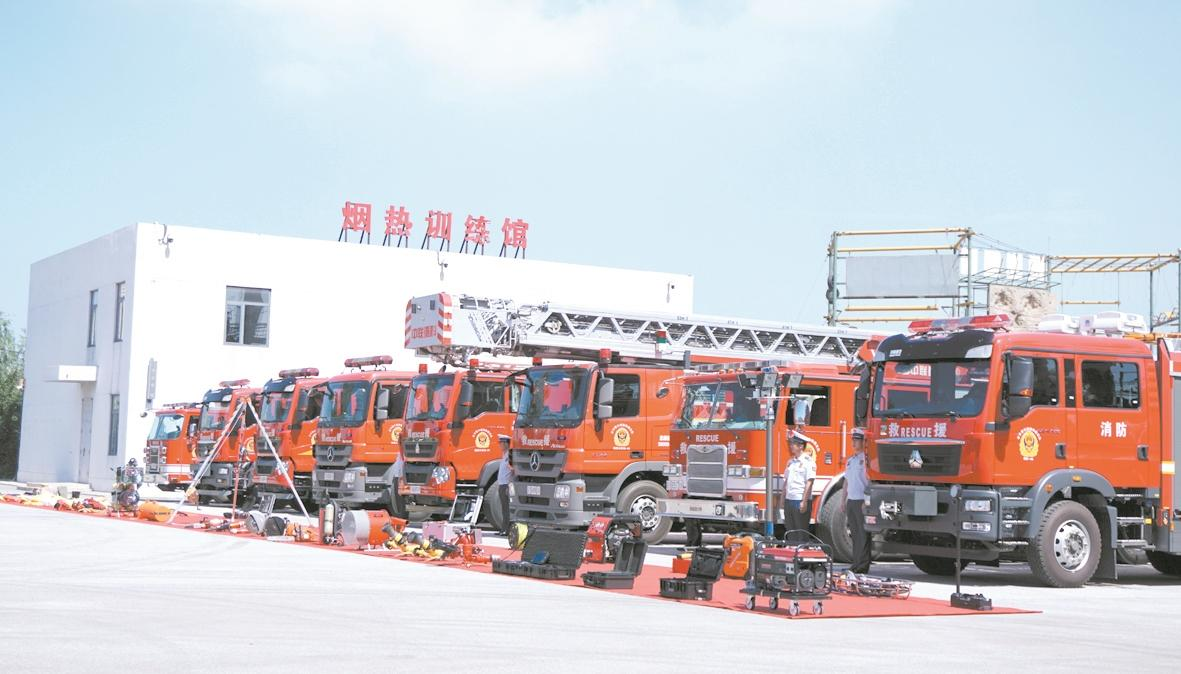 活動(dòng)現(xiàn)場(chǎng)的各類消防救援車輛及配套裝備。