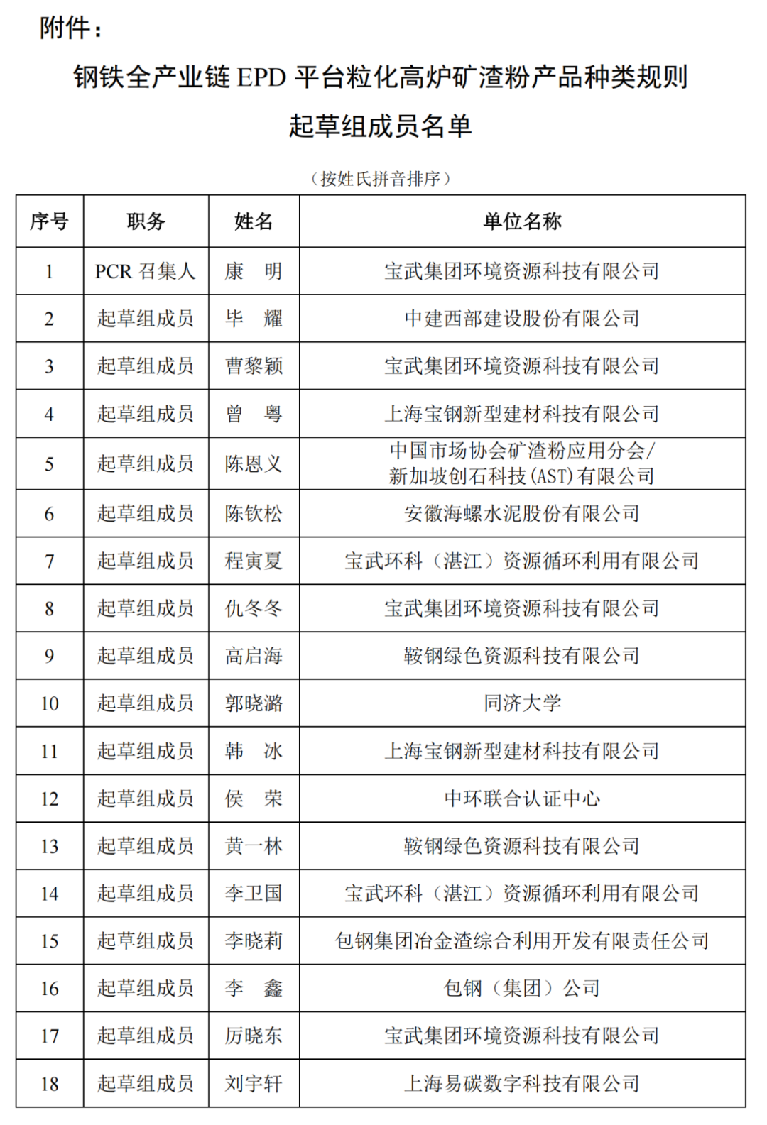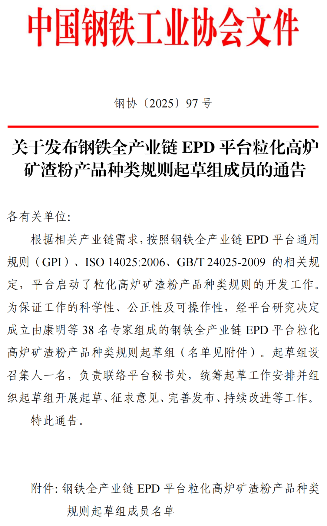 關(guān)于發(fā)布鋼鐵全產(chǎn)業(yè)鏈EPD平臺?;郀t礦渣粉產(chǎn)品種類規(guī)則起草組成員的通告?
