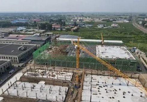 烈日炎炎,遼陽(yáng)興旺石墨制品有限公司新建年產(chǎn)8000噸高端新材料項(xiàng)目建設(shè)現(xiàn)場(chǎng),施工者不畏高溫加緊施工。