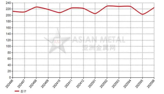 2025年6月份中國重?zé)V砂出口額23,693,499.00美元,去年同期為29,903,697.00美元,上月為18,970,990.00美元,同比下滑20.77%,環(huán)比增長24.89%。出口均價225.05美元/公噸,去年同期為213.11美元/公噸,上月為203.39美元/公噸。