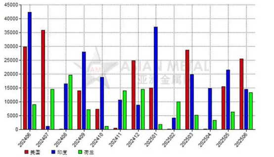 2025年6月,中國重?zé)V砂前三大出口目的國為美國、印度和荷蘭。
