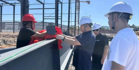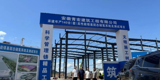 2025 年 8 月 15 日上午,安徽鎂源智能裝備有限公司年產(chǎn) 140 臺(tái)套高性能鎂基固態(tài)儲(chǔ)氫系統(tǒng)及測(cè)試項(xiàng)目 1# 廠房鋼結(jié)構(gòu)工程順利封頂。青陽開發(fā)區(qū)管委會(huì)陳穗主任、張懿君副主任;浙江鎂源動(dòng)力科技有限公司董事長陳哲、總經(jīng)理劉兵銀;安徽青宏建筑工程有限公司董事長王偉、副總經(jīng)理胡孫洪等出席儀式。