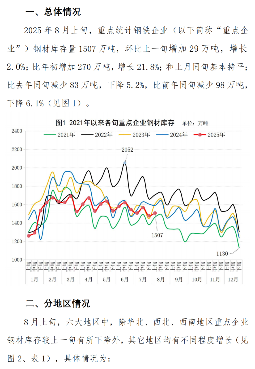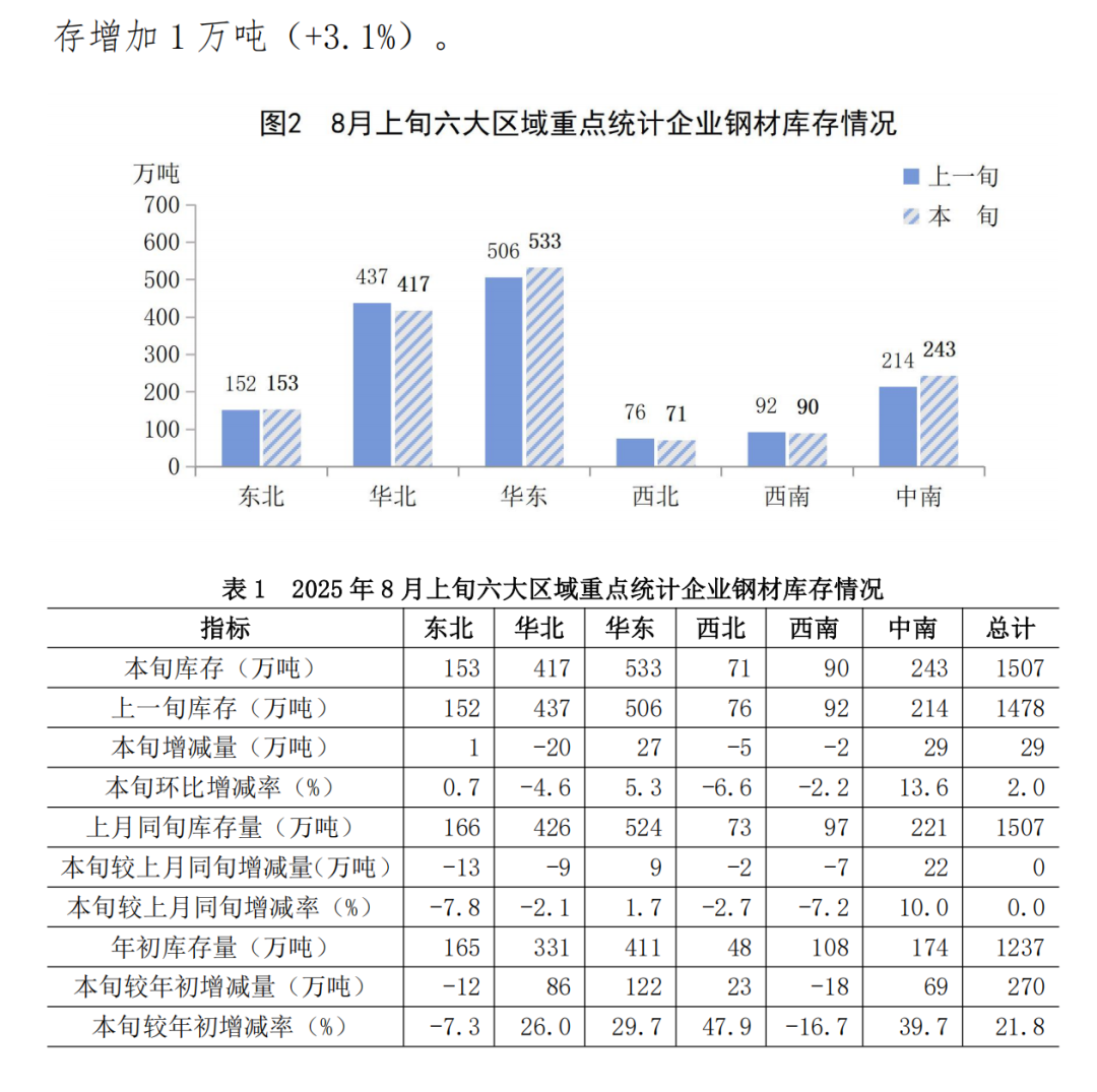 2025年8月上旬重點(diǎn)企業(yè)鋼鐵庫(kù)存旬報(bào)