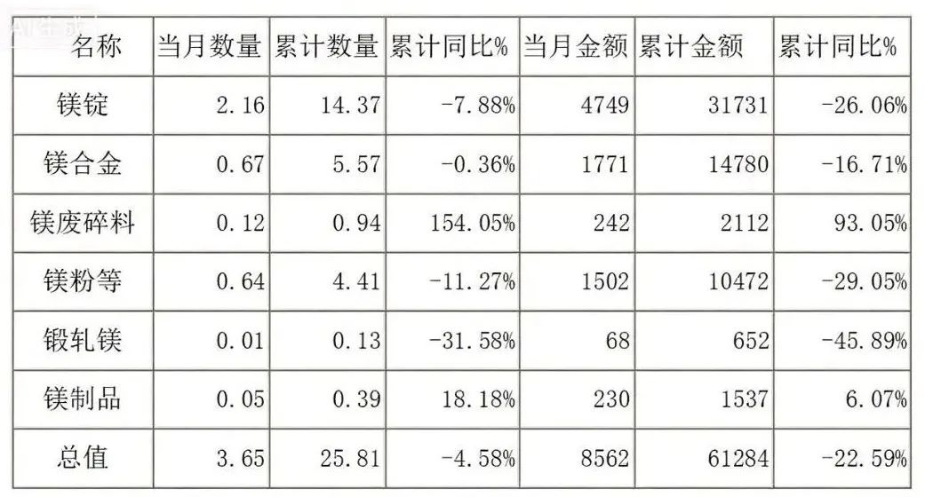 當(dāng)前,鎂產(chǎn)品出口面臨兩大挑戰(zhàn):一是傳統(tǒng)主品種(鎂錠、鎂粉)累計(jì)降幅仍超10%,顯示下游傳統(tǒng)工業(yè)需求復(fù)蘇緩慢;二是高附加值產(chǎn)品(如鍛軋鎂、深加工制品)占比不足5%,產(chǎn)業(yè)升級(jí)迫在眉睫。