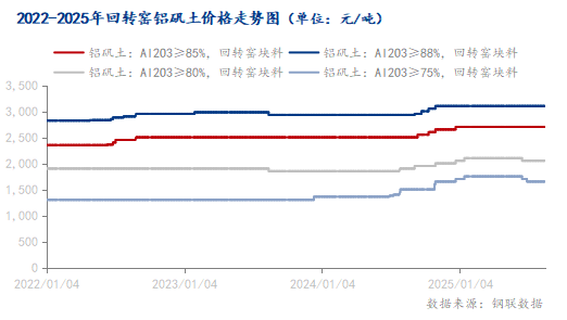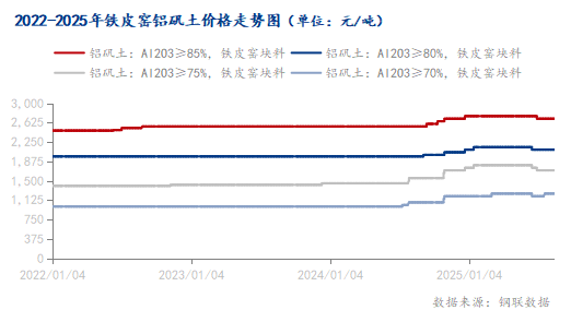 圖1 2022-2025年鐵皮窯鋁礬土價格走勢圖