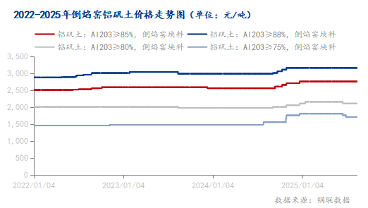 圖3 2022-2025年倒焰窯鋁礬土價格走勢圖
