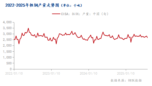 圖4 2022-2025年粗鋼產(chǎn)量走勢圖
