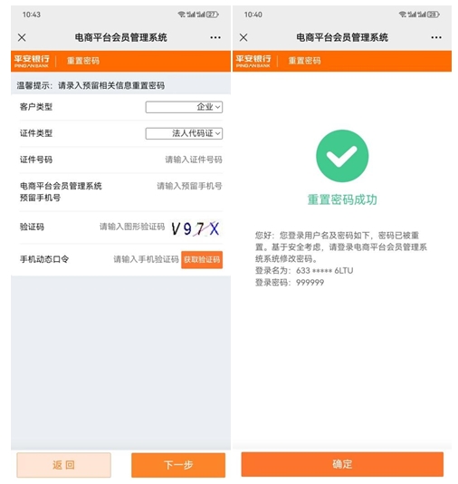 (銀行系統(tǒng):用戶(hù)名、密碼不可見(jiàn),需要重置后,才能登陸)